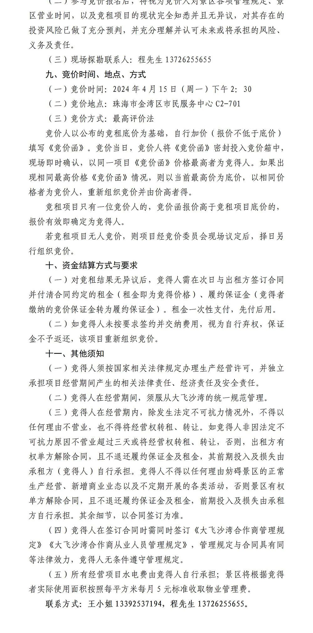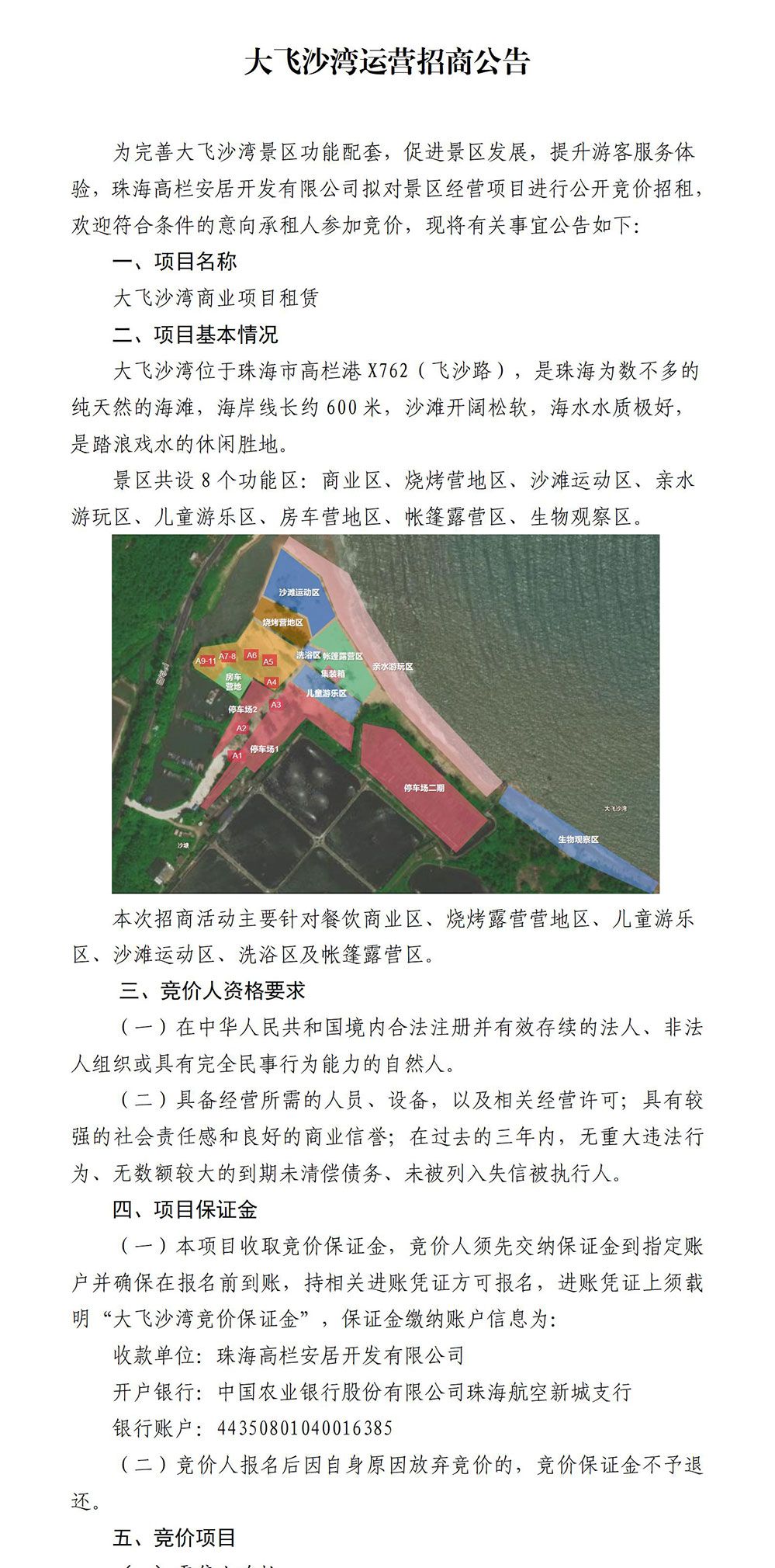 大飛沙灣運(yùn)營招商公告
