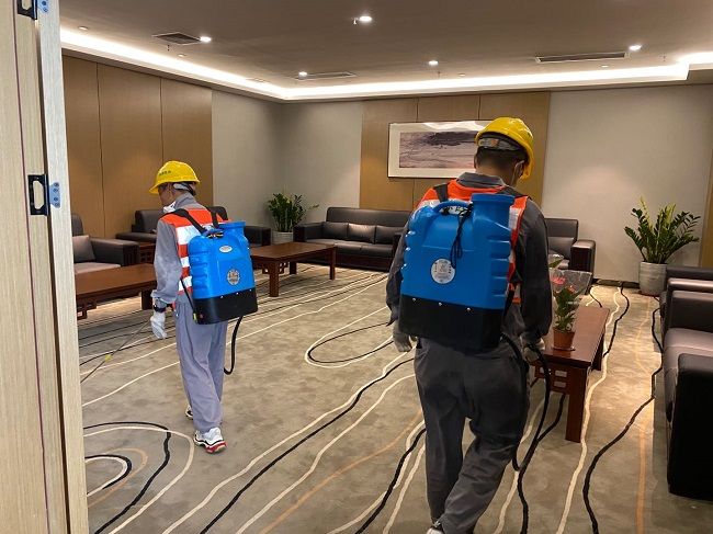 六是防控措施有力。提前準(zhǔn)備防疫物資,包括測溫槍、測溫儀、消毒液等設(shè)施設(shè)備,并設(shè)置臨時隔離點。組織開展全面消殺,會議前后對各會場全面消殺1次,公共區(qū)域和衛(wèi)生間每天消殺3次,電梯每2小時消殺1次。會前采用循環(huán)風(fēng)降溫,會中主要使用新風(fēng)系統(tǒng),營造健康舒適的會場環(huán)境。