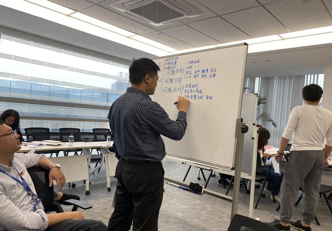 培訓采取分組討論形式,分成四組對相關(guān)案例進行全面復盤,并按照內(nèi)部環(huán)境、風險評估(辨識、分析)、控制活動、信息與溝通、內(nèi)部監(jiān)督等五個方面,對案例中反映出的該公司在戰(zhàn)略、業(yè)務(wù)、資源、法務(wù)等管理中存在的重大風險、失效環(huán)節(jié)進行全面的辨識和分析,有針對性地提出控制措施和解決方案。研討過程中,各小組推選了小組長,全體成員發(fā)揮各自專業(yè)優(yōu)勢,開展頭腦風暴,集思廣益,形成各小組的分析結(jié)論,并逐一對分析成果進行了講解和展示?;顒蝇F(xiàn)場氣氛熱烈,討論充分,各小組站在內(nèi)部控制獨特視角,指出了很多隱藏在公司管理中的“漏洞”“死角”,特別針對制約制衡機制、分權(quán)管理、監(jiān)督審核的重要意義和完善方案提出了獨到的見解。在最后的自評打分環(huán)節(jié),各小組還特別針對小組成員的參與程度、分工協(xié)作、溝通交流等情況進行了自評,為下一步加強跨部門、跨單位的良好溝通、互動開了一個好頭。