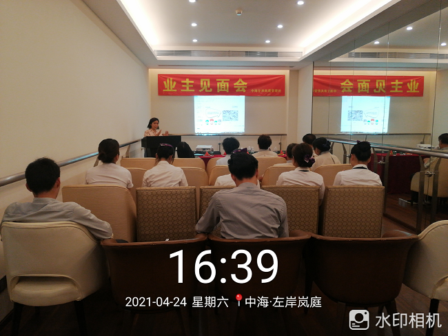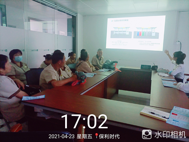 4月23日、24日下午聯(lián)港公司垃圾分類項目宣講員到保利時代、中海左岸嵐庭小區(qū)開展垃圾分類專題培訓,保利時代、中海左岸嵐庭物業(yè)管理層和保潔隊伍等共計50人,分成兩批參訓。聯(lián)港公司垃圾分類項目宣講員受邀前往現(xiàn)場作《垃圾分一分金灣美十分》主題培訓。