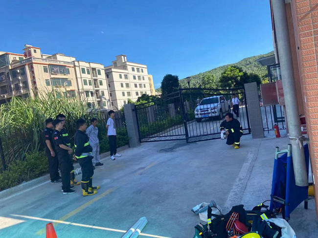 下午三點半演練正式開始,模擬小區(qū)發(fā)生火災(zāi),消防警報拉響,模擬巡邏隊、中控室、疏散組、微型消防站等先后有序出動,并著重展示了社區(qū)微型消防站進(jìn)行了實操噴水、傷員救助、疏散群眾等內(nèi)容。