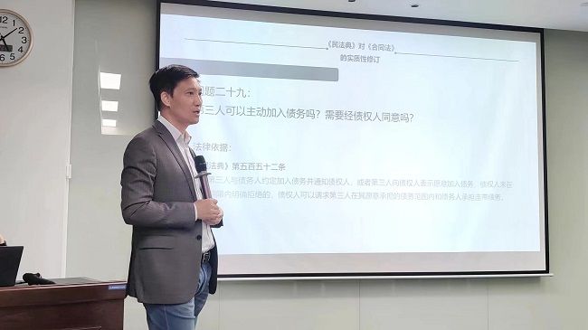 北京大成(珠海)律師事務(wù)所高級合伙人薛鵬律師以《民法典下合同實務(wù)研究》為主題貫穿培訓(xùn)課程,通過三十個常見的實務(wù)案例問題,詳細解讀了《民法典》對合同編作出的實質(zhì)性修改內(nèi)容,進一步強調(diào)合同訂立、履行、變更、解除等管理工作重要性。參訓(xùn)人員積極互動交流,提出實操過程中合同履約、風(fēng)險控制等方面的疑問,切實化解工作中的難題。