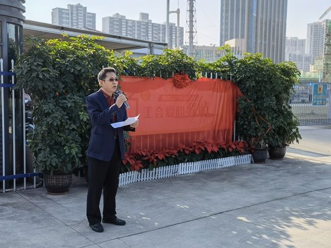 來(lái)自聯(lián)港城運(yùn)綠化部的陳婷作為戶外勞動(dòng)者代表發(fā)言,愛(ài)心驛站的建設(shè)是分享,也是共享,傳遞愛(ài)心,傳遞暖意,感謝區(qū)總工會(huì)和集團(tuán)工會(huì)為大家創(chuàng)造了如此美好的“暖心之家”,讓他們享受到“熱可納涼、冷可取暖、累可歇腳、渴可飲水”等服務(wù)。