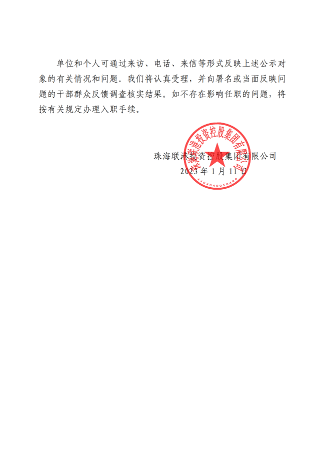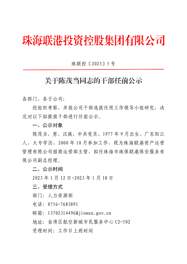 珠聯(lián)控〔2023〕5號(hào) 關(guān)于陳茂當(dāng)同志的干部任前公示